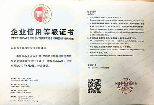 Cardlan was awarded "Corporate credit rating AAA credit enterprises," representing the company's operating strength and corporate credit comprehensive upgrading, This is not only is the great affirmation of good faith management also provides a more favorable external environment and conditions for our company to better participate in future market competition and strengthen business.